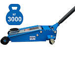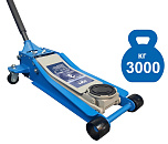 Гарантия 1 год. Профессиональный. Для интенсивной эксплуатации. Быстрый подъем - 7 качков для поднятия на макс высоту. Подкатной. Низкопрофильный. Двухштоковый механизм. Усиленная конструкция. Поворотная ручка, тавотница, лоток для хранения и резиновая накладка на чашку домкрата в комплекте. Грузоподъемность 3 тонны с усиленными ребрами жесткости.  Высота подъема мин / макс - 75-505 мм. ВЕС - 34,5 кг.