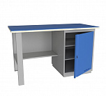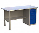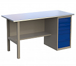 Однотумбовый. Допустимая нагрузка на столешницу 750 кг. Опорные элементы выполнены сварными из холоднокатаной стали. Для выполнения сборочных, ремонтных, слесарных, монтажных и других видов работ на производстве, в сервисных центрах, мастерских, гаражах, а также для обучения технологии в учебных заведениях. Комплектуется полкой-стенкой, расположенной под столешницей для удобного размещения габаритного инструмента и оснастки. Размеры верстака: 855x1596x696 мм. Вес: 68 кг. Поставляется в 4 комплектациях на выбор.