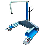 Тележка гидравлическая передвижная для снятия и транспортирования колёс и колёсных пар грузовых автомобилей, максимальная масса поднимаемого груза 750 кг, максимальная высота подъема 400 мм, для колес с наружным диаметром от 800 до 1400 мм. Привод подъема гидравлический, ножной педалью.