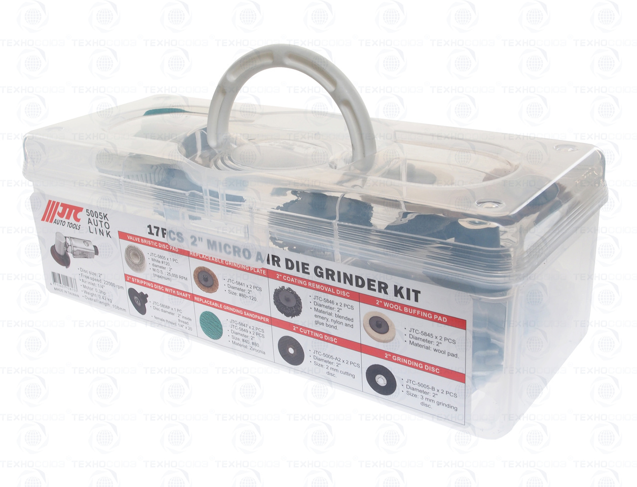 Машина углошлифовальная пневматическая 2" с насадками 17 предметов JTC-5005K
