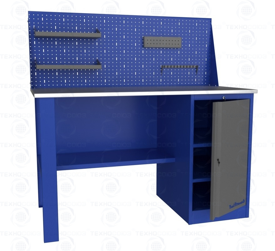 Для организации рабочих мест в автосервисах, мастерских, цехах и т.д., компания разработала линейку верстаков и рабочих столов. Основания этих изделий изготовлены из листового металла и покрыты порошковой краской. Столешницы сделаны из фанеры толщиной 24 мм. и обшиты оцинкованным металлом толщиной 1 мм.