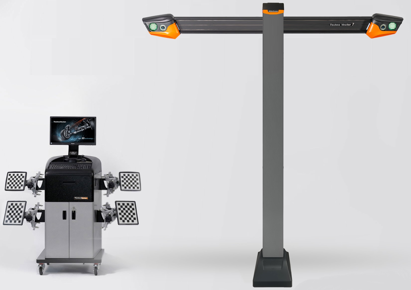 T 7202 TAB Стенд сход-развал 3D Техно Вектор. Две неподвижные видеокамеры. Напольный. Серия Basic. Лаконичный дизайн с высокими потребительскими качествами. Для работы на яме или подъемнике. Высокая точность и скорость работы - обработка 40 кадров в секунду. База данных 65 000 авто. Расстояние от камер до центра передних поворотных платформ 1400 - 3500 мм. Функция «Автозаполнение».