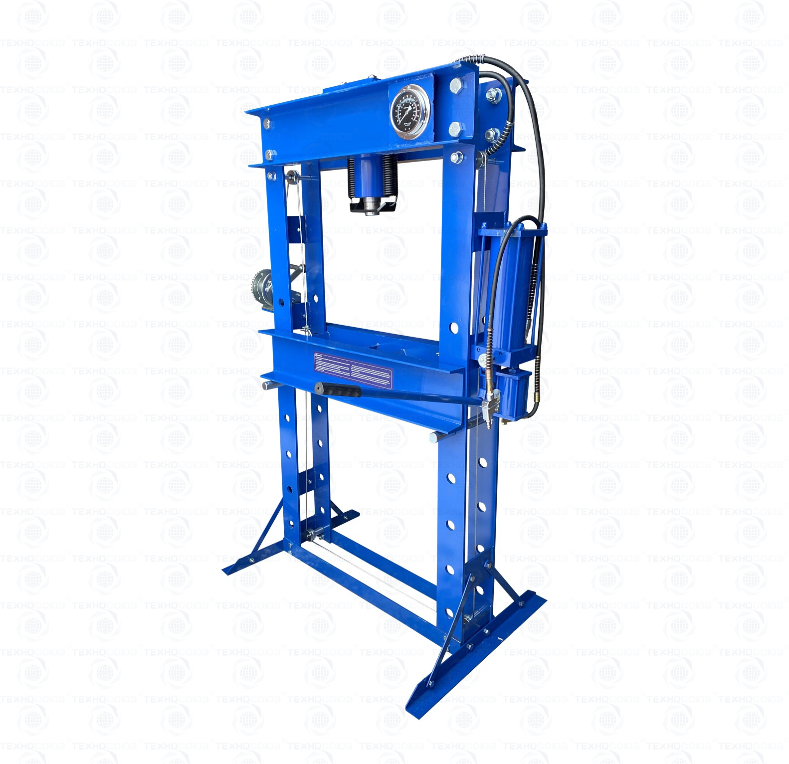 · Пресс укомплектован гидравлическим ручным насосом и пневмогидравлическим с максимальным усилием 50 тонн.